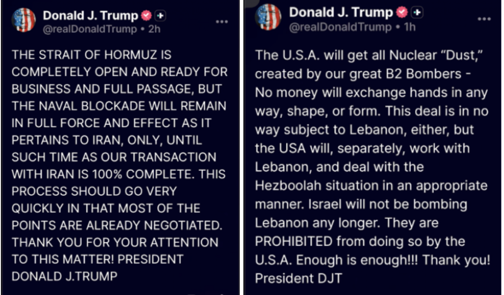 در همین حال، آقای ترامپ اعلام کرده که به اسرائیل گفته است نباید به لبنان حمله کند، اما در توییتی دیگر نوشته که مسئله لبنان و حزبالله ارتباطی به آتشبس کنونی ندارد. او همچنین از پاکستان و برخی کشورهای عربی تشکر کرده و در پیامهایش گفته که همه چیز به خوبی پیش میرود و ایرانیها توافق کردهاند «خاکستر اتمی» را هم به آمریکا بدهند؛ منظور او همان اورانیومهای غنیشده شصت درصدی است که به باور آنان پس از بمباران زیر آوار پنهان شده است.