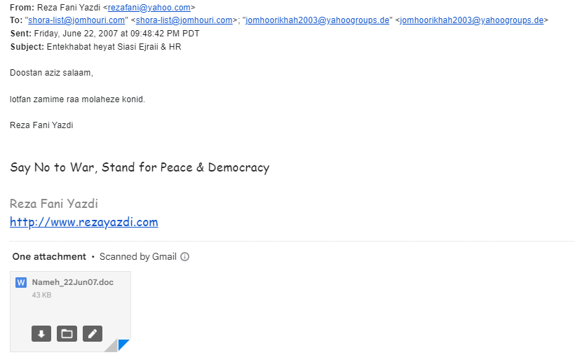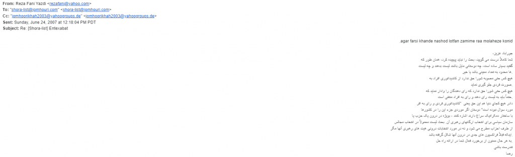 این نامه را چنانکه می بینید در تاریخ ۲۲ جون ۲۰۰۷ به اعضای شورای هماهنگی منتخب همایش سوم نوشتم