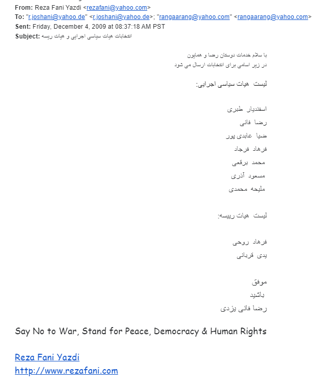 این نامه به این دلیل نوشته شد که تعدادی از دوستان برای جلوگیری از کاندید شدن افراد خاصی از جمله من سعی کردند که با آوردن لیست هایی از حضور افراد به گونه فردی جلوگیری کنند و بح این شیوه مانع انتخاب آنها شوند. این پیشنهاد ها بیشتر از طرف امیر حسین و مهرداد و تعداد دیگری از افرادی متره می شد که بعدا از اتحاد جمهوریخواهان جدا شده و گروه دیگری را درست کردند.