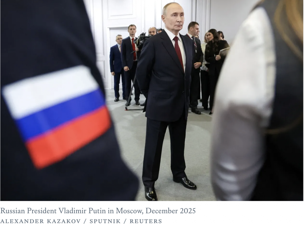 در حالی که روسیه برای اثبات خود در عرصهٔ جهانی دستوپا میزند، وسواس پوتین نسبت به اوکراین تشدید شده است. وضعیت میدانی برای مسکو «قابل دوام» است: خطوط مقدم روسیه حفظ شده و نیروهایش بهتدریج پیشروی سرزمینی دارند، اما مسکو از پیروزی فاصلهٔ زیادی دارد. با وجود موجی از دیپلماسیِ مرتبط با اوکراین، مذاکرات صلح به جایی نرسیده است. موضع ترامپ دربارهٔ جنگ همچنان نوسان دارد. در همین حال، اروپا در حال کشف عاملیت خود است و طرح صلحی را که عملاً به تسلیم اوکراین بینجامد تحمل نخواهد کرد. کییف با کمک اروپا از واگذاری پیشاپیش امتیاز به روسیه سر باز خواهد زد.
