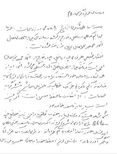 نامه زیر نیز قبل از نامه بالا نیز در همین رابطه برای دوستان بصورت دست خط و به شکل پی دی اف فرستده شد.