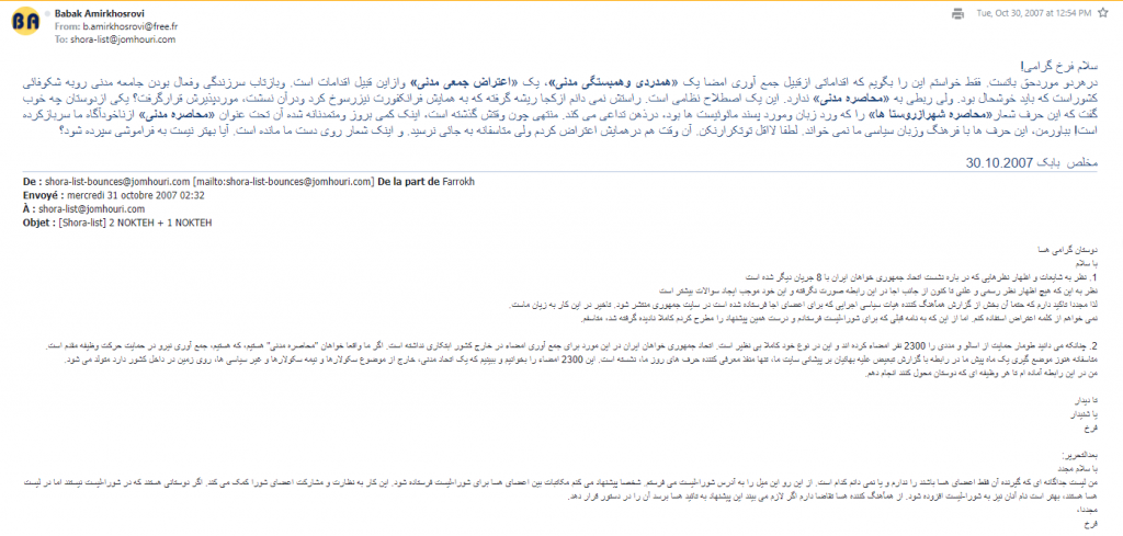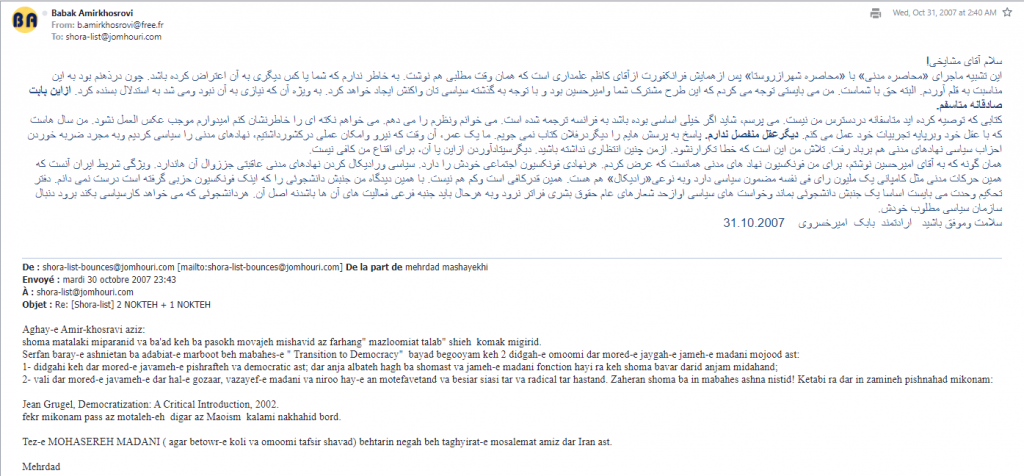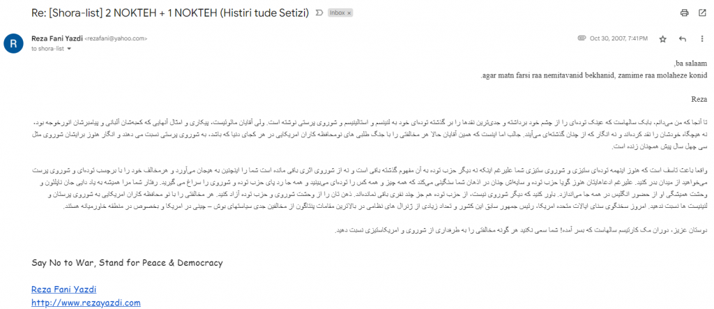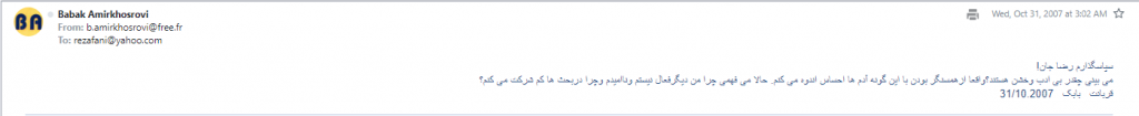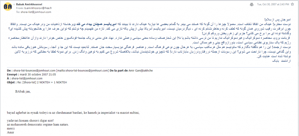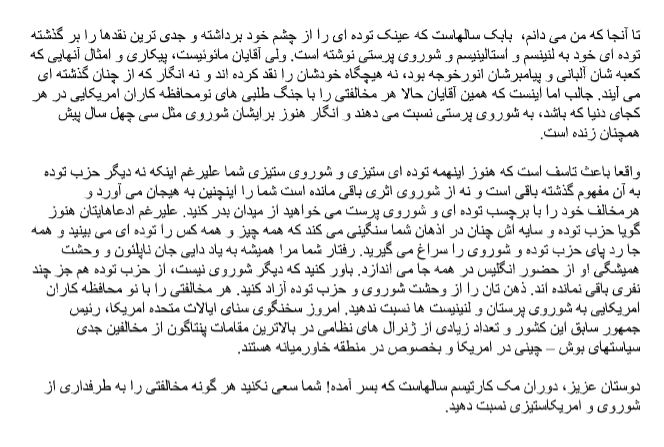 نمونه زیر یکی از این برخورد ها با بابک امیرخسروی بود که بیانگر خوبی از این نوع از ادبیات است.